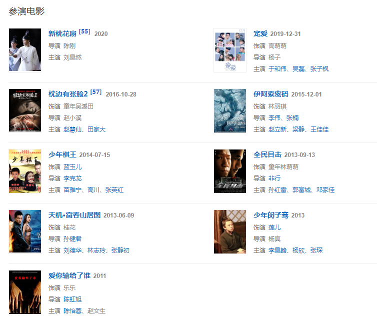 代表作品:你好,舊時光、星落凝成糖、原來你還在這里、少年棋王、無心法師Ⅱ、中國式關(guān)系、親愛的,回家