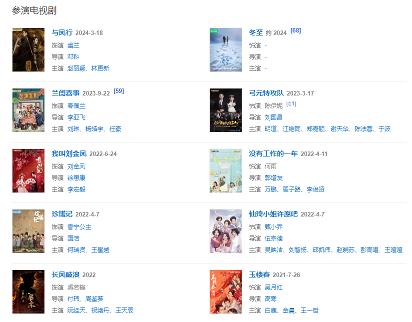2022年,主演的古裝愛情輕喜劇《我叫劉金鳳》播出,在劇中飾演村花劉金鳳,這是她首度獨(dú)挑大梁擔(dān)任女主。