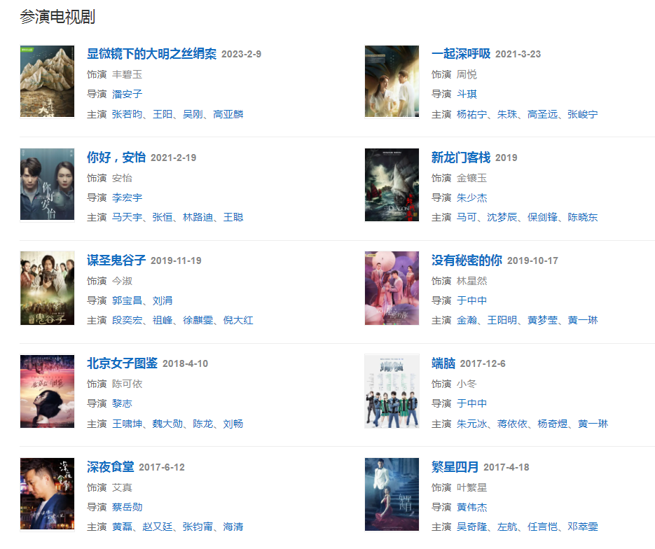 2023年2月9日,領(lǐng)銜主演的古裝歷史劇《顯微鏡下的大明》在愛奇藝播出,在劇中飾演豐碧玉。