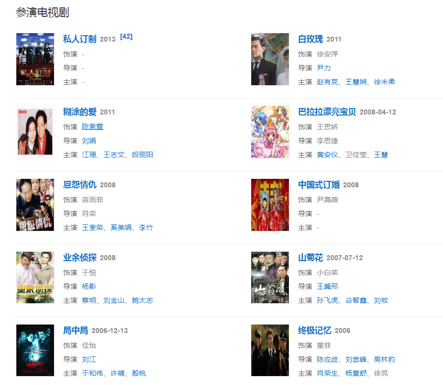 代表作品:紅色警戒、婆媳過招、啼笑因緣、花樣的年華、刁蠻公主、局中局