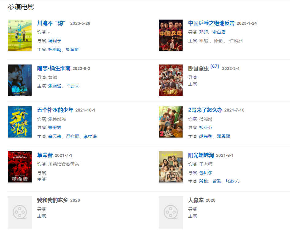 202213日,特別出演的兩性關(guān)系話題劇《幸福二重奏》在央視八套開(kāi)播  ;34日,參演的爆笑喜劇電影《臥鼠藏蟲(chóng)》全國(guó)公映;62日,與張雪迎、辛云來(lái)聯(lián)合參演的電影《暗戀·橘生淮南》上映。