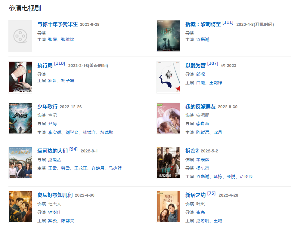 20223月,主演由潘鏡丞執(zhí)導(dǎo)的電視劇《大運(yùn)之河》;428日,特別出演的當(dāng)代都市劇《新居之約》播出。430日,出演的年代情感劇《良辰好景知幾何》在浙江衛(wèi)視、優(yōu)酷視頻播出  。52日,主演的偵破奇案劇《拆案2》播出,在劇中飾演法醫(yī)車素薇  。6月,參加綜藝節(jié)目《五十公里桃花塢第二季》。