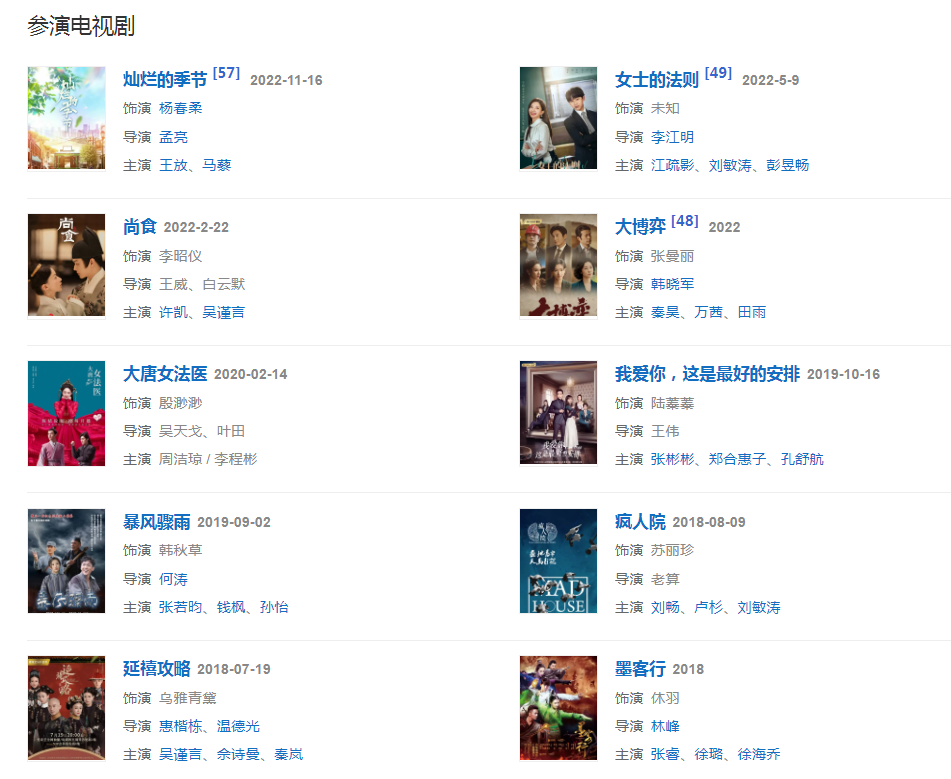 2020年2月14日,參演的古裝懸疑愛(ài)情勵(lì)志劇《大唐女法醫(yī)》播出;同年,主演古裝玄幻片《織就云夢(mèng)許蒼生》 。