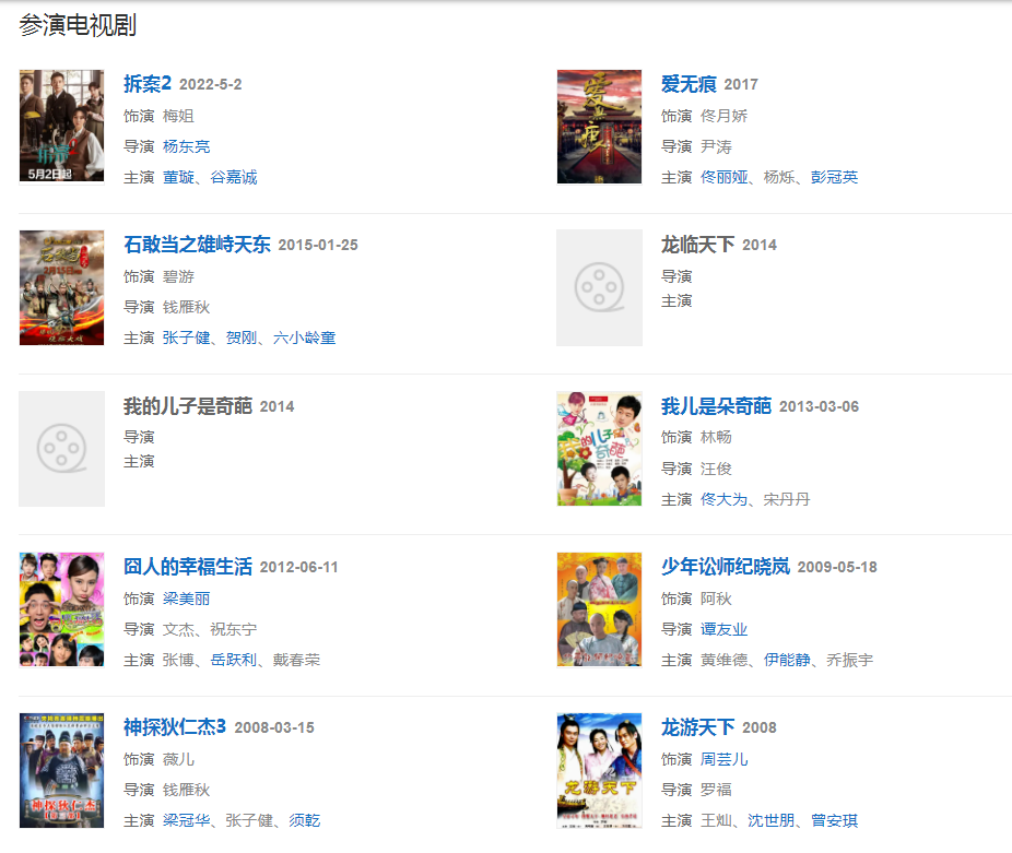 代表作品:神探狄仁杰第三部、火星寶貝之火星沒事、囧人的幸福生活、我的兒子是奇葩