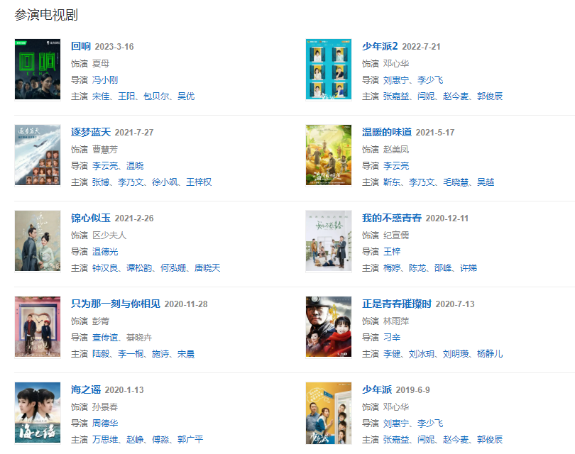 2021年,主演的當代農(nóng)村劇《溫暖的味道》播出。7月27日,領銜主演的電視劇《逐夢藍天》開播 ;參演電視劇《錦心似玉》。
