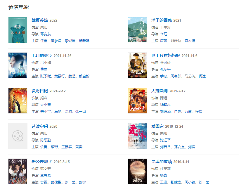 2022年1月,參演奇幻喜劇《童年快樂》同月28日,主演電視劇《人世間》,在劇中飾演喬春燕; 2月15日,參加《2022年中央廣播電視總臺(tái)元宵晚會(huì)》;5月20日,參加的音樂競(jìng)演綜藝《乘風(fēng)破浪第三季》播出;5月25日,參與《突襲訓(xùn)練室》。