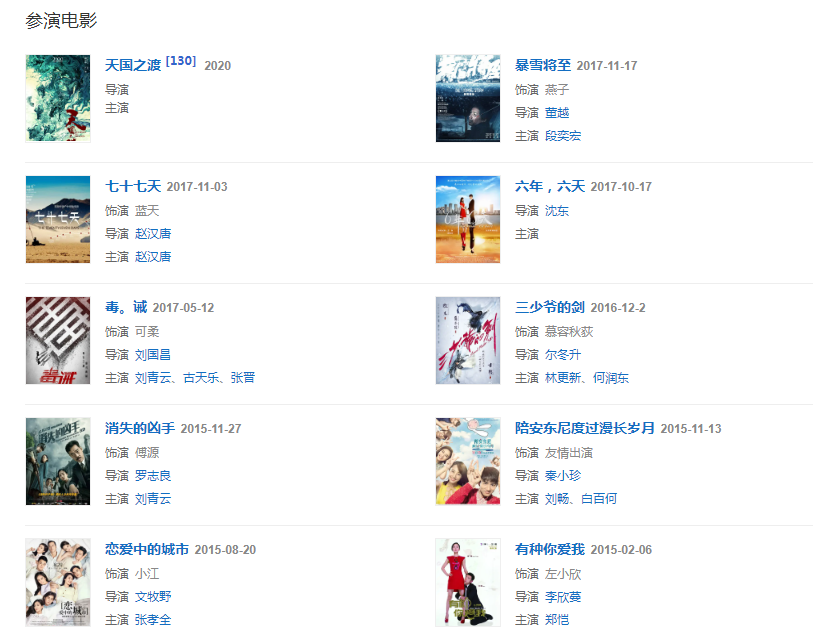 代表作品:我們無處安放的青春、南京!南京!、假裝情侶、消失的子彈、七十七天