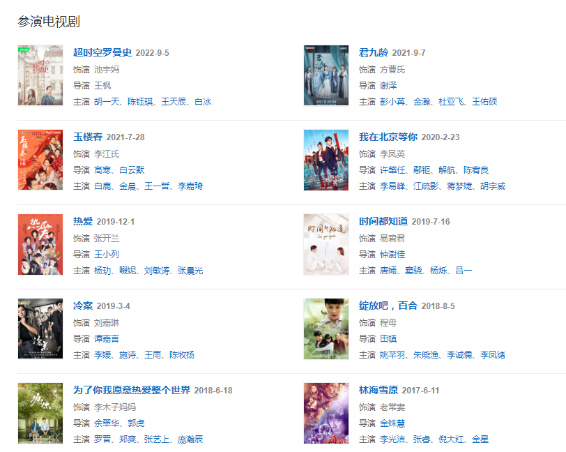 2006年,在胡玫執(zhí)導(dǎo)的電視劇《喬家大院》里飾演大奶奶曹月枝。