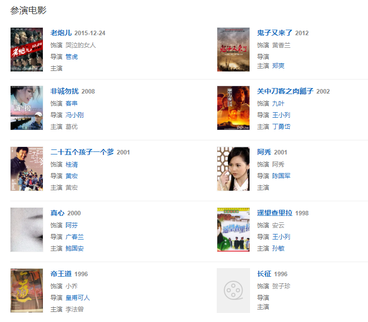 代表作品:《趟過男人河的女人》,《歷史的天空》
