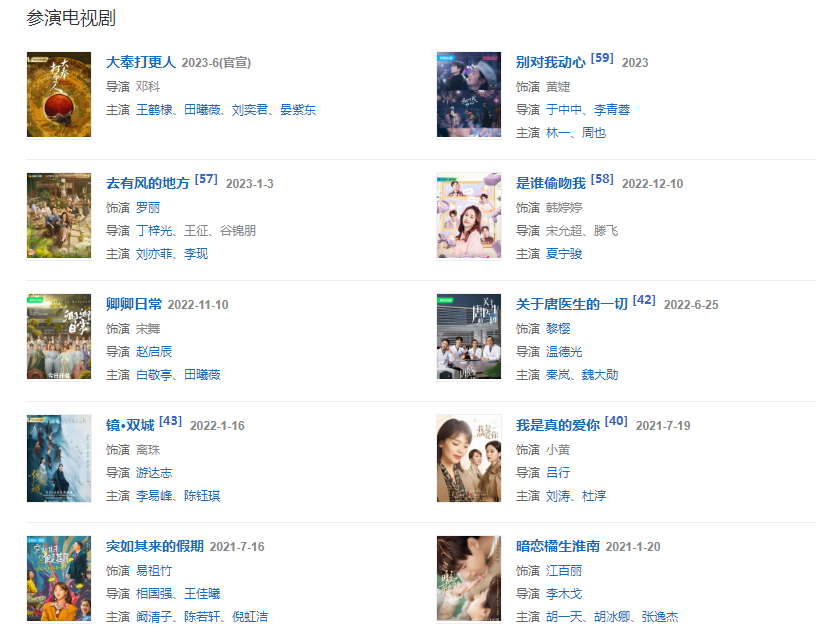 2015年,主演懸疑劇《笨蛋愛上兩個(gè)你》;同年,她還主演了青春劇《十五年等待候鳥》 。