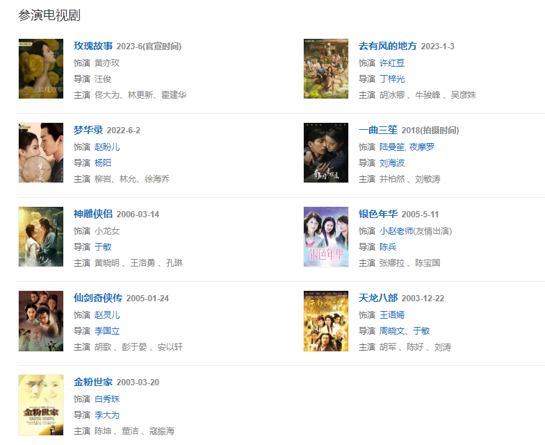 2003年因出演武俠劇《天龍八部》中王語嫣一角嶄露頭角  。