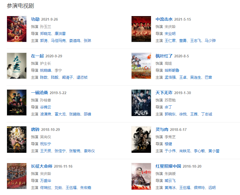 20164月,參演革命歷史劇《紅星照耀中國(guó)》,飾演上海地下黨政治局辦事處負(fù)責(zé)人朱端綬 [13]  ;同年,參演電視劇《識(shí)汝不識(shí)丁》,飾演陳文帝的皇姐陳婧  。