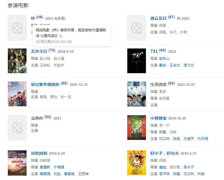 2021211日,參加《2021年中央廣播電視總臺(tái)春節(jié)聯(lián)歡晚會(huì)》,與李文啟、黃曉娟、尚大慶、佟大為、王麗坤、秦昊、王硯輝、王圣迪、婁藝瀟一同表演小品《陽(yáng)臺(tái)》;226日,參加《2021年中央廣播電視總臺(tái)元宵晚會(huì)》,與李文啟、尚大慶等演唱歌曲《賣(mài)湯圓》;515日,聯(lián)合主演的重大歷史革命題材電視劇《中流擊水》在CCTV1、央視頻同步播出;102日,參演的電視劇《功勛》之《默默無(wú)聞張富清》播出  1227日,參演的電影《生死速度》定檔; 參演電影《穿過(guò)寒冬擁抱你》。