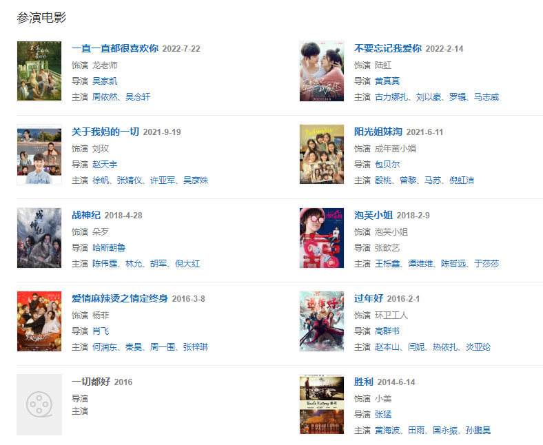 2022214日,特別出演的電影《不要忘記我愛你》上映。520日,參加的勵志成長音樂競演節(jié)目《乘風(fēng)破浪第三季》上線。