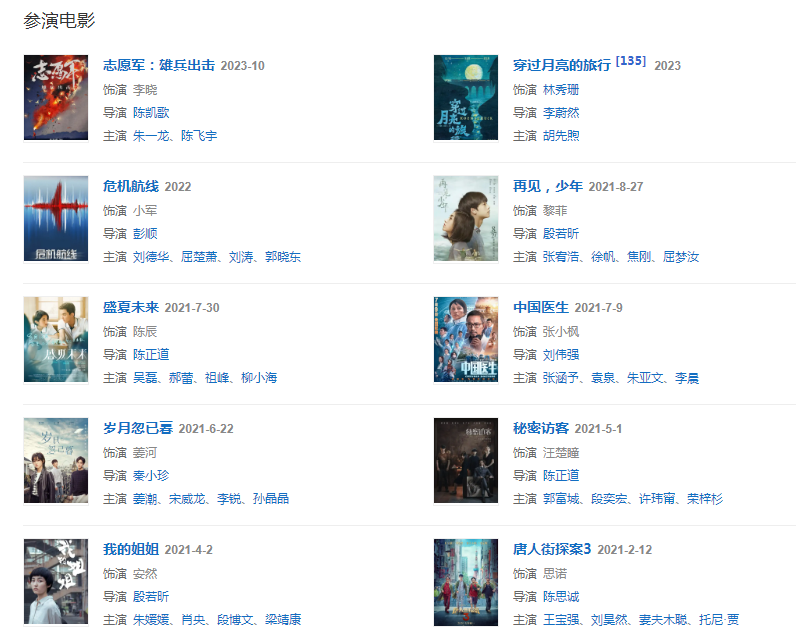 職 業(yè):演員代表作品唐山大地震、唐人街探案、快把我哥帶走、我的姐姐、你好,之華、盛夏未來(lái)、小別離