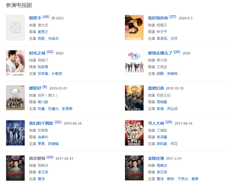 代表作品:別來無恙、風(fēng)云、錦繡未央、都挺好