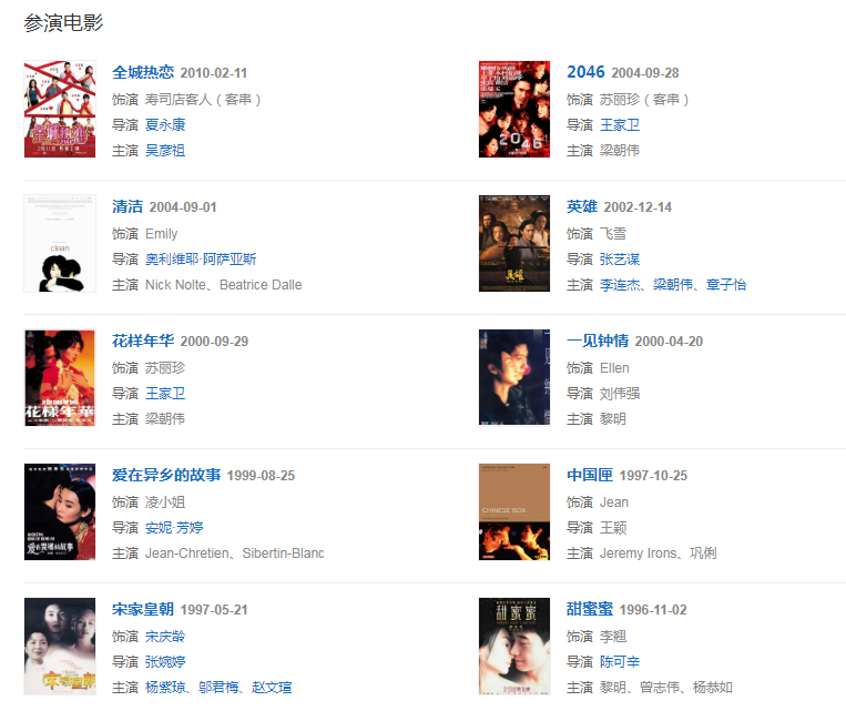 張曼玉出場(chǎng)費(fèi)180萬(wàn)/場(chǎng)