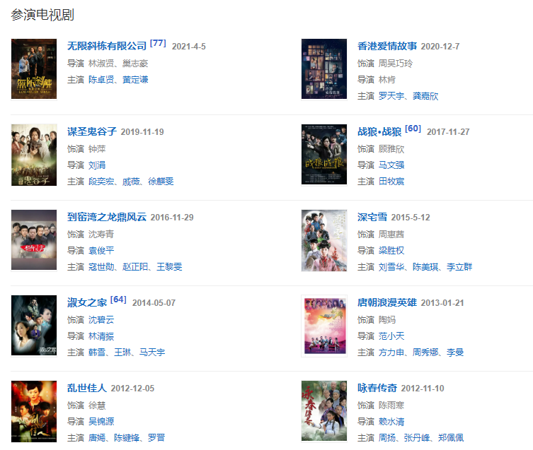 代表作品:倚天屠龍記,新白娘子傳奇,表錯(cuò)七日情,婚姻勿語(yǔ),碧海情天