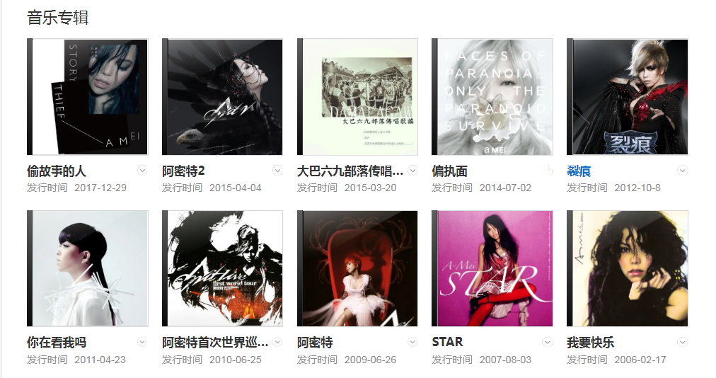 代表作品:姐妹、Bad Boy、聽海、記得、如果你也聽說、原來你什么都不要、我最親愛的、血腥愛情故事、我可以抱你嗎、我要快樂、哭不出來、好膽你就來、牽手、趁早、剪愛、火、人質(zhì)、勇敢、給我感覺、連名帶姓