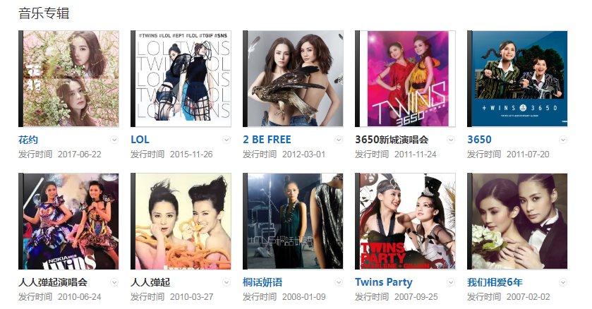2011年,Twins成軍十年,發(fā)行專輯國語《3650》。2012年發(fā)行粵語專輯《2 Be Free》。