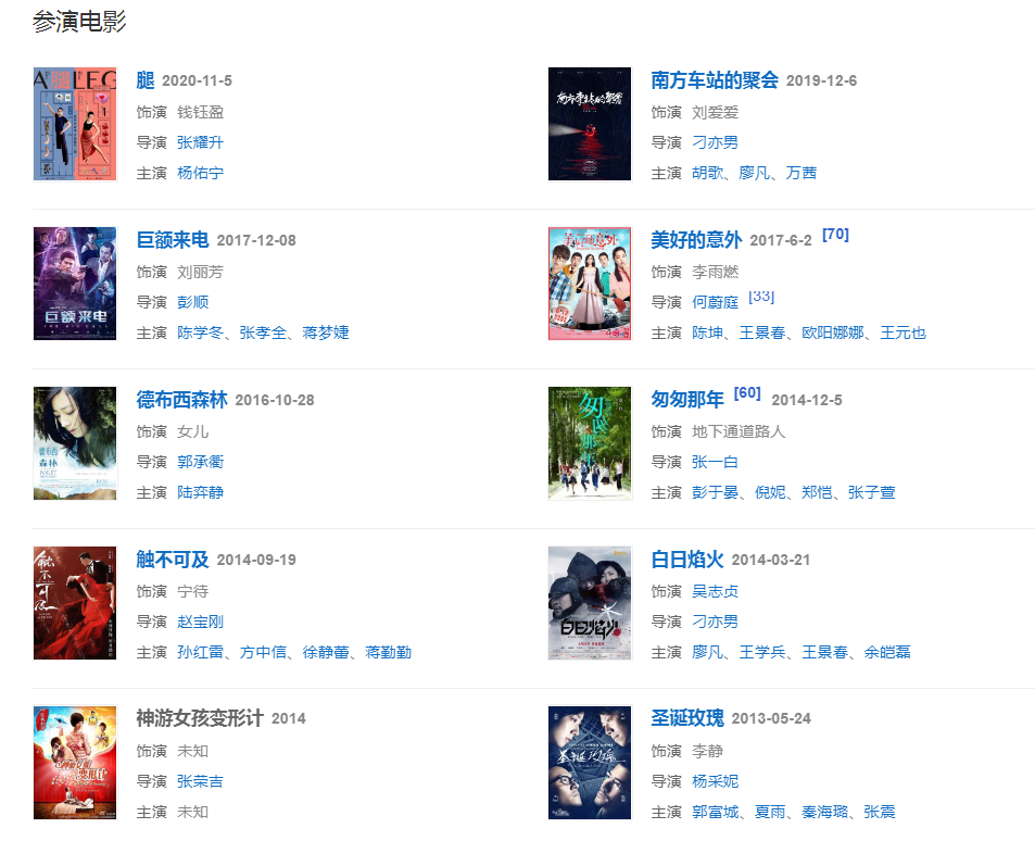 代表作品:藍(lán)色大門、不能說的秘密、海洋天堂、女人不壞、女朋友·男朋友、圣誕玫瑰、龍門飛甲、白日焰火