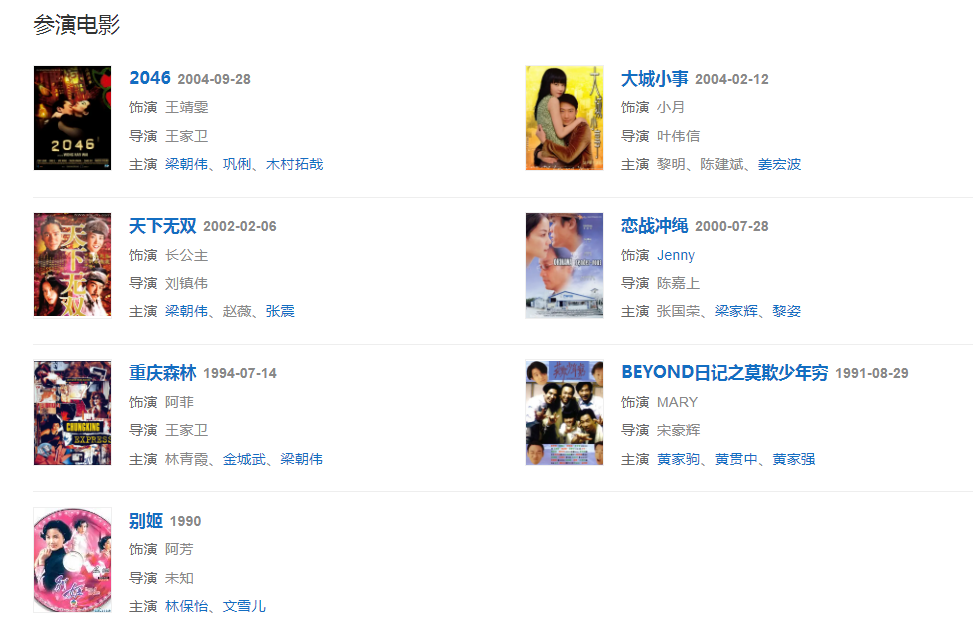 代表作品:容易受傷的女人、我愿意、天空、紅豆、Eyes On Me、夢中人、笑忘書、流年、你快樂所以我快樂、給自己的情書、約定、人間、匆匆那年、致青春、將愛、旋木、執(zhí)迷不悔、重慶森林、2046、天下無雙