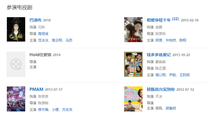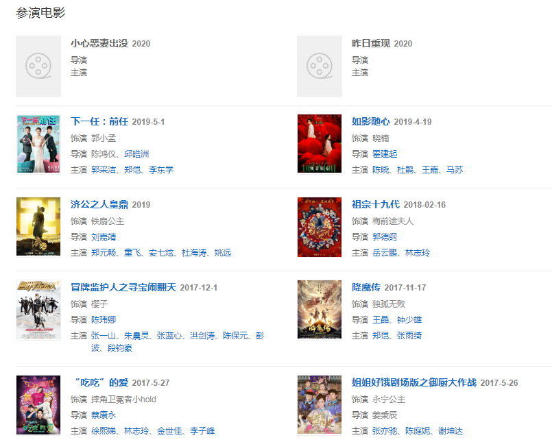 2015年出演的穿越偶像周播劇《相愛穿梭千年》于2月在湖南衛(wèi)視播出,  2015年,出演神話電影《濟公》扮演鐵扇公主。