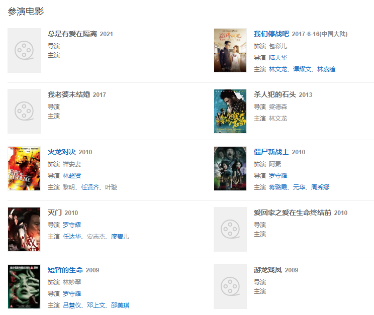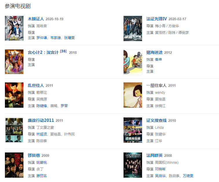 代表作品法網(wǎng)群英,情陷夜中環(huán),我和僵尸有個約會