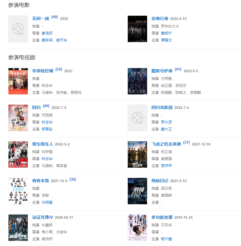 2023年8月4日,參演電影《無間之戰(zhàn)》播出。