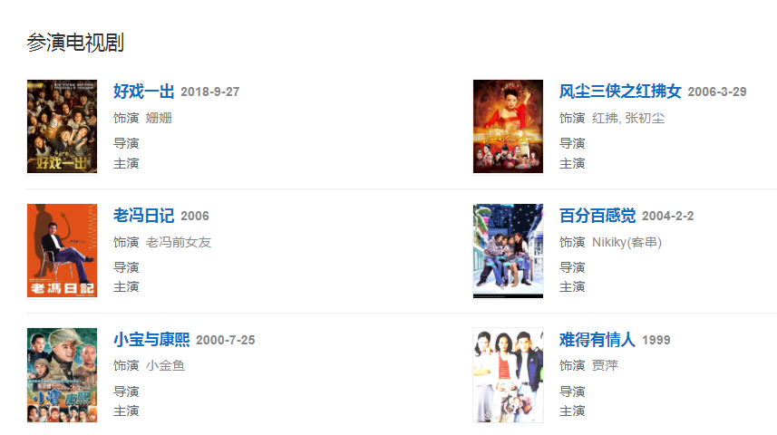 2001年,主演愛情電影《千禧曼波之薔薇的名字》,由此獲第2屆華語電影傳媒大獎最佳女演員提名  。