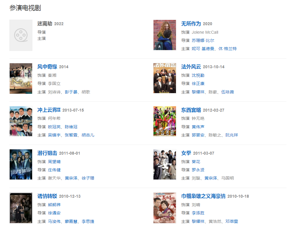 代表作品:東西宮略、巾幗梟雄之義海豪情、沖上云霄II、舞動全城