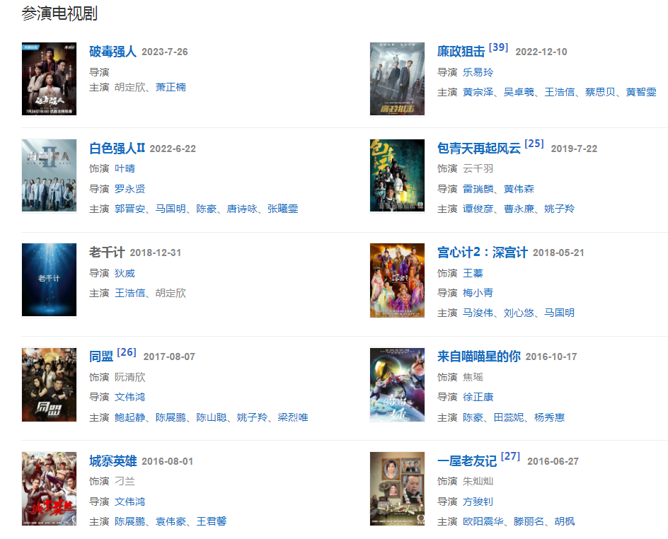 代表作品:大唐雙龍傳、銀樓金粉、法證先鋒III、巾幗梟雄之義海豪情、沖上云霄Ⅱ、點(diǎn)金勝手、布衣神相