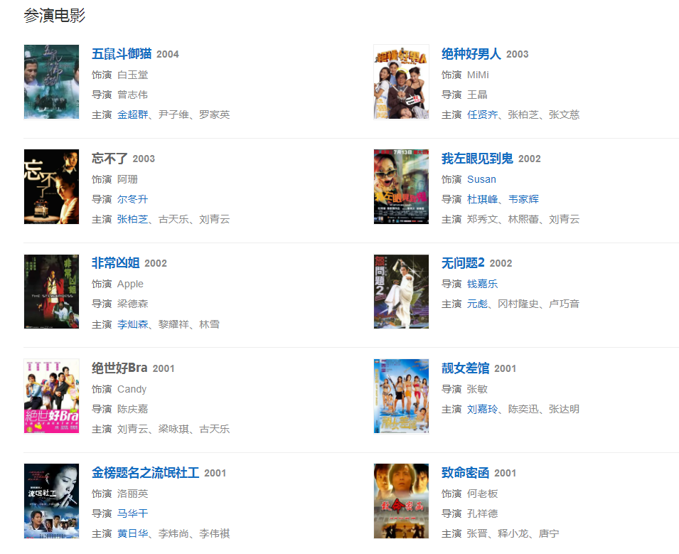 2004年,出演古裝魔幻劇《幻影神針》、香港警務(wù)紀(jì)實劇《靈異偵緝檔案II》;隨后主演動作片《五鼠斗御貓》。