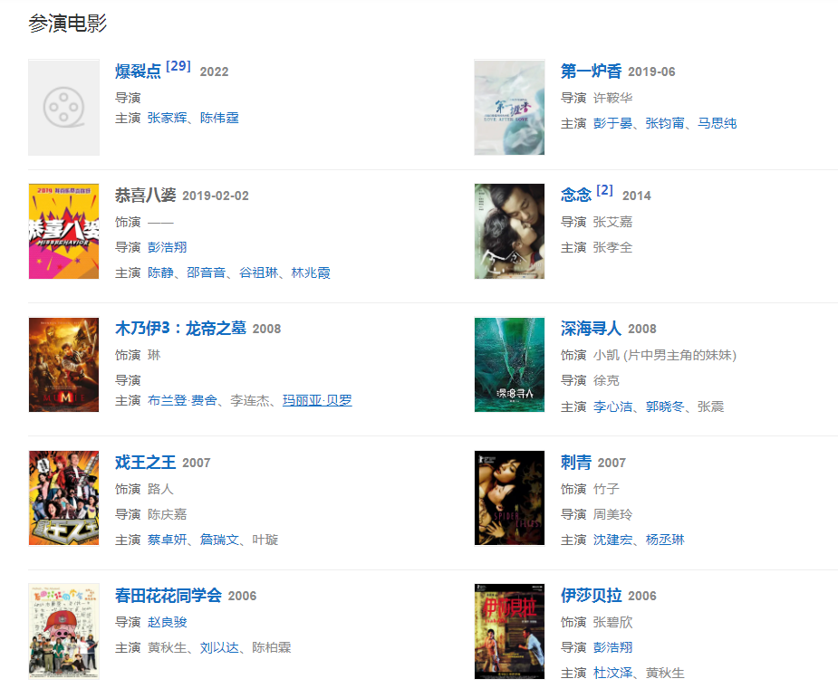 20196月,參演根據(jù)張愛玲小說改編的電影《第一爐香》。