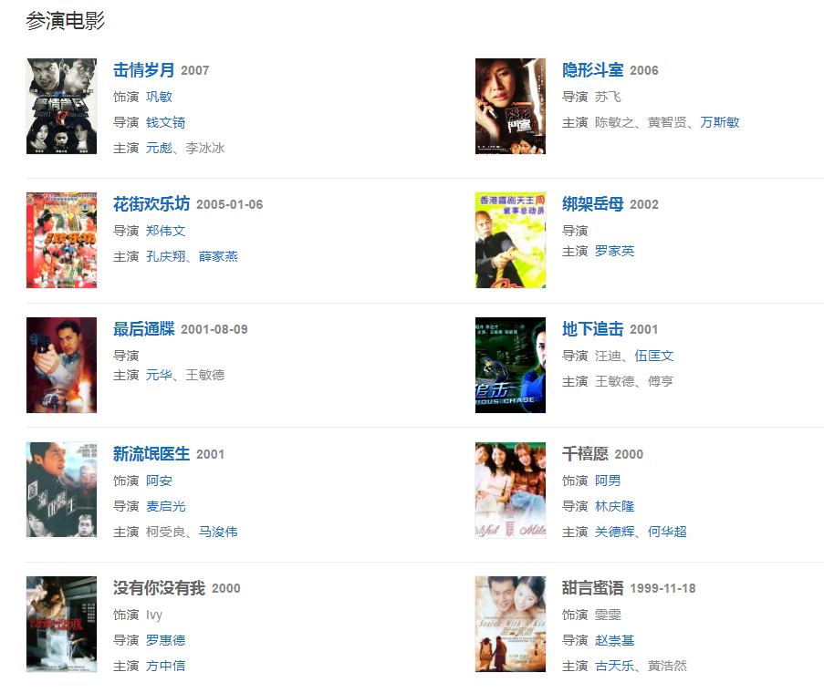 1999年,憑借與劉德華、劉青云主演的警匪片《暗戰(zhàn)》受到廣受關(guān)注  。