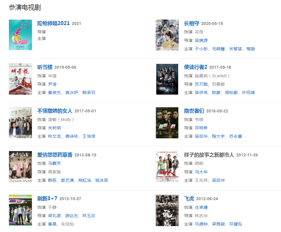 20029月主演時裝商戰(zhàn)劇《流金歲月》;12月憑借民國愛情劇《戇夫成龍》獲得更多的關(guān)注。