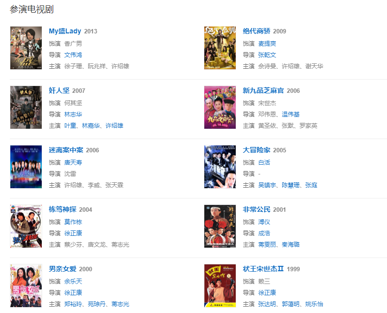 代表作品:秋前算賬、MyLady、男親女愛、狀王宋世杰Ⅱ