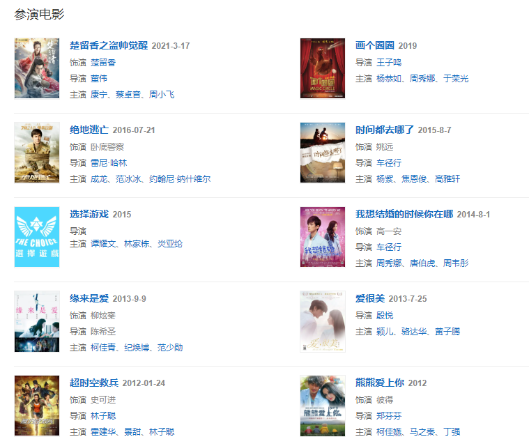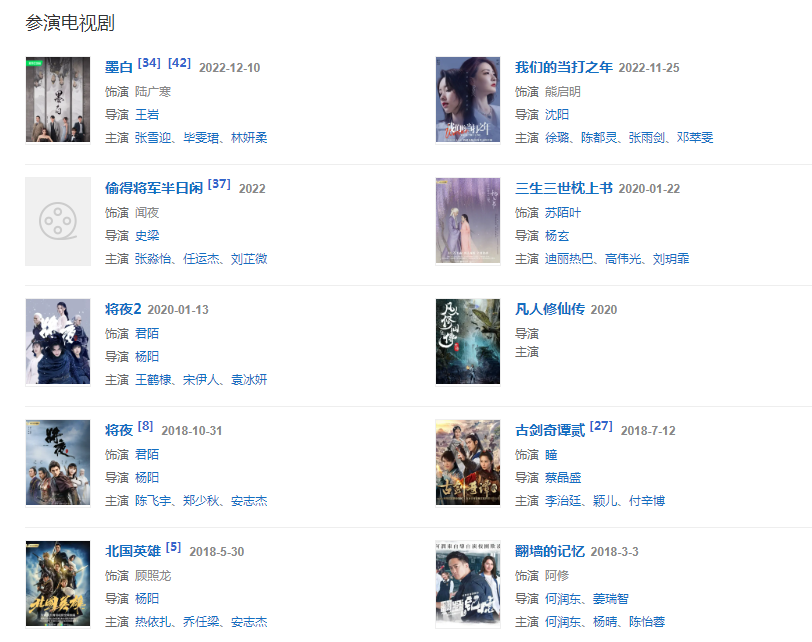 代表作品:斗魚(yú)、斗魚(yú)Ⅱ、軍雞、單身公主相親記、花木蘭傳奇、將夜、將夜2、三生三世枕上書(shū)、談判官、十二生肖傳奇