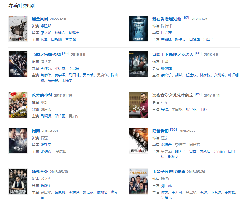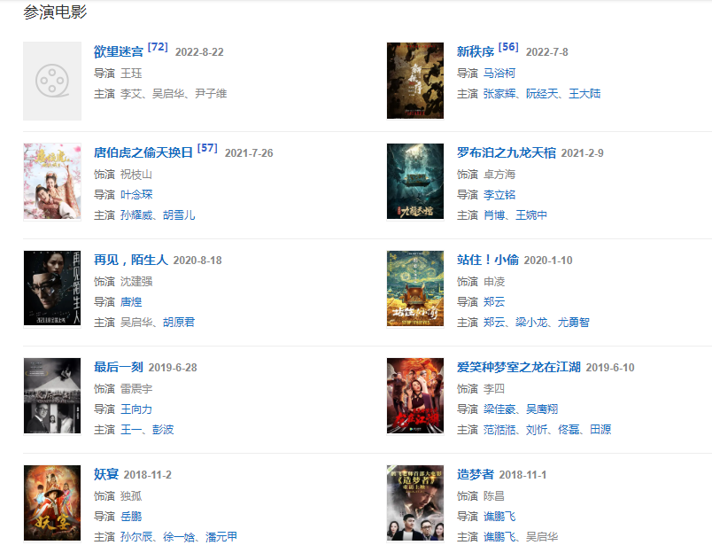 202129日,主演的奇幻探墓電影《羅布泊之九龍?zhí)旃住吩隍v訊視頻獨(dú)家上線;同年,特別主演反腐懸疑題材網(wǎng)劇《黑金風(fēng)暴》;參演電影《唐伯虎之偷天換日》。