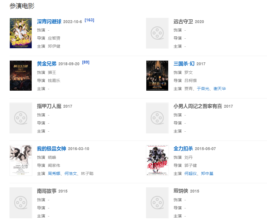 19977月主演電影《風(fēng)云雄霸天下》飾演聶風(fēng)一角。