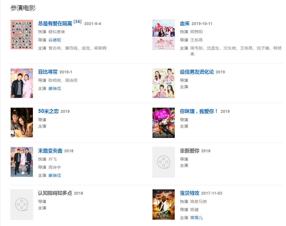 2017113日,主演電影《寶貝特攻》全國上映,飾演高家兄弟;1212日,參演電影《末路變奏曲》飾演齊飛。