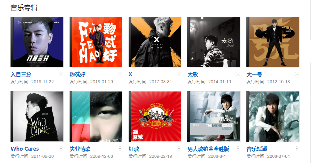 截至2020年,胡彥斌已發(fā)行十二張正式專輯,累計創(chuàng)作數(shù)百首歌曲。