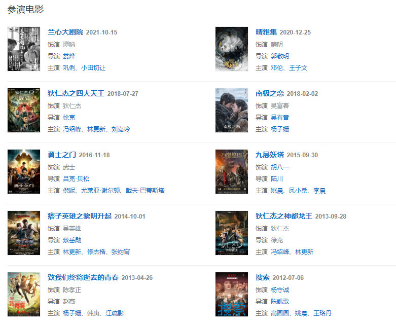 代表作品艋舺、搜索、痞子英雄、南極之戀、三生三世十里桃花、狄仁杰之神都龍王、致我們終將逝去的青春、平凡的榮耀