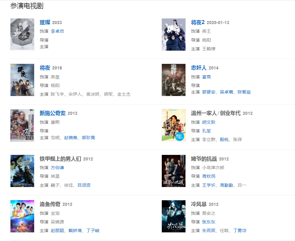 2004年,在電視劇《大唐雙龍傳》中飾演奸角宇文化及  。