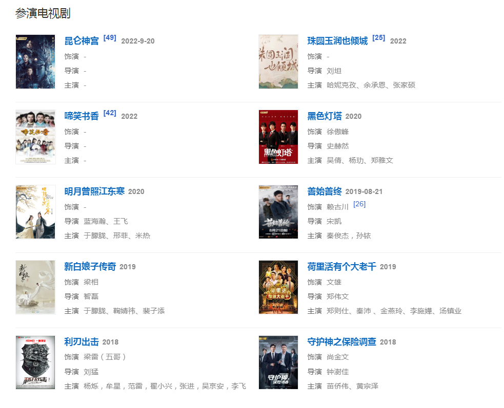 2022年,參演電視劇《儒林外史之啼笑書香》。515日,參演的軍事動作電影《狙擊之王:暗殺》在銀川殺青