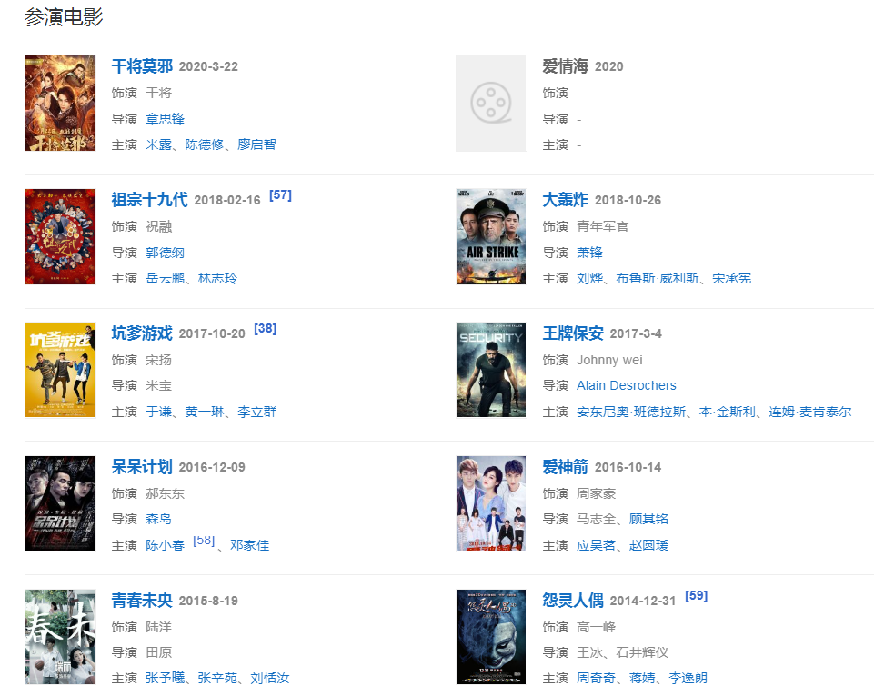 20131115日,主演的愛情喜劇電影《我的男男男男朋友》上映;1218日,主演愛情喜劇電影《我的播音系女友》  。