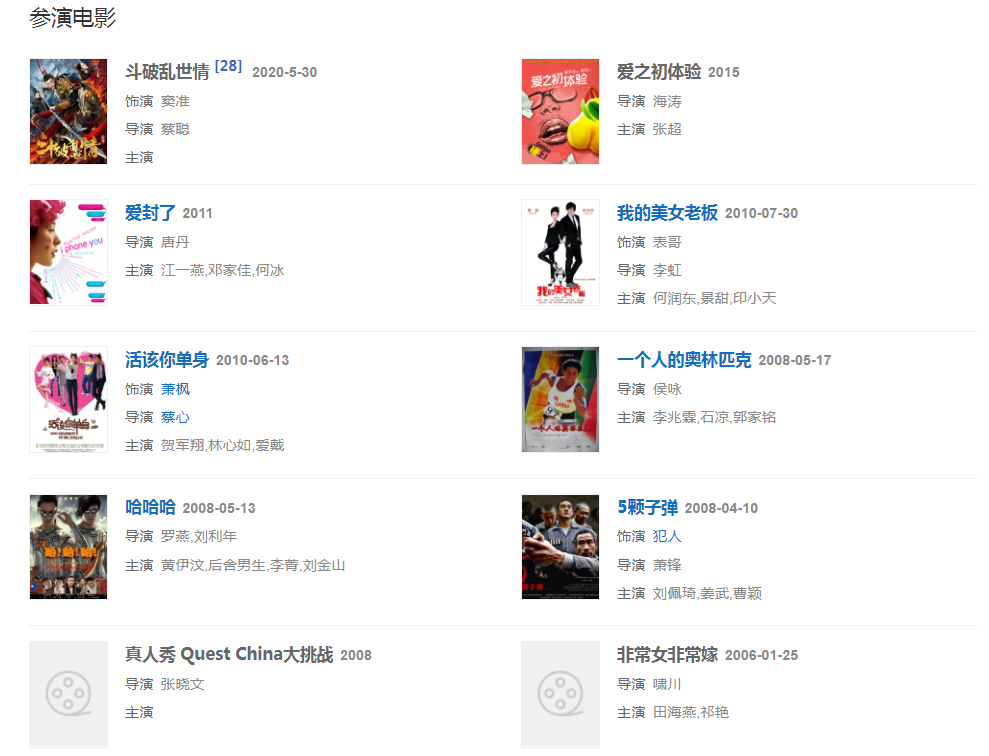 代表作品:霸王別姬、烈火戰(zhàn)車、我和春天有個約會、皇后進(jìn)宮