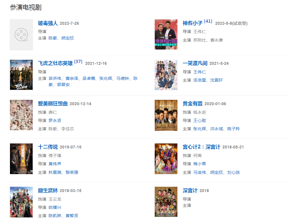 代表作品:《戀愛自由式》《怪俠一枝梅》《法證先鋒3》《當(dāng)旺爸爸》《幕后玩家》