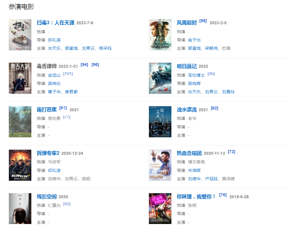 20223月,主演的電影《來訪者》舉行了開機儀式。4月,主演的懸疑燒腦電影《來訪者》順利殺青;612日,主演的獻禮劇《獅子山下的故事》播出。