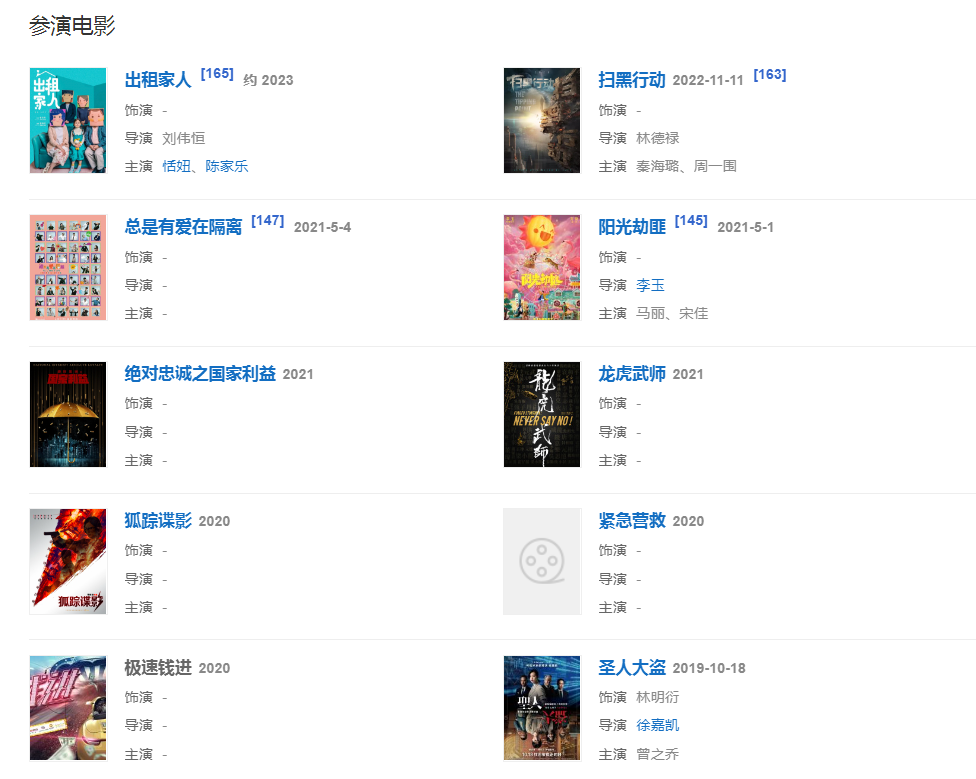 2020928日,參演麥詠麟執(zhí)導(dǎo)的動(dòng)作電影《龍虎斗》  。
